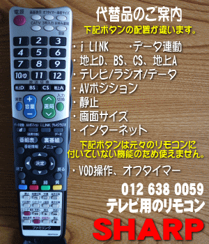 商品名液晶テレビアクオス用のリモコン 商品品番 部品コード0126380059 入数1個 適用機種LC-37GX10、LC-37GX1W、LC-37GX2W、LC-42GX1W、LC-42GX2W、LC-46GX10、LC-46GX1W、LC-46GX2W、LC-52GX1W、LC-52GX2W メーカーシャープ・SHARP 注意電池はセットではありません。