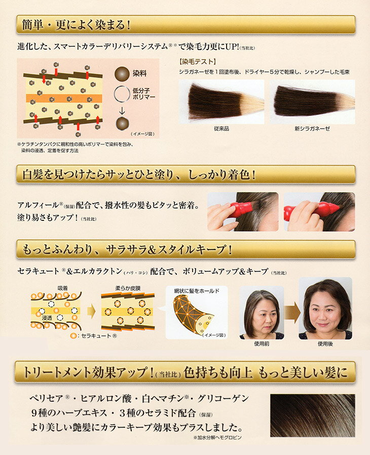 シラガネーゼの4代目「シラガネーゼ ポイントリッチカラー」は4つの力がアップして、シラガネーゼ史上最高の使いやすさです!