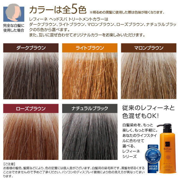白髪染め レフィーネ ヘッドスパ トリートメントカラー(スターターセット)300g【2本で送料100円/3本で送料無料】カラートリートメント 気持ちいい 染まりやすい 色持ち 女性用 男性用 refine 美容室 トリートメント 5色 ブラック ブラウン